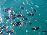After this observation you will return to Drake Bay where the boat is waiting for you to take you to the snorkeling place. Box lunch will be served on board at around 14:30. After this you will snorkel for approximately 30 minutes, where you might see tropical fishes and sea turtles. After this you will start the return trip to Puerto Lopez. At 17.30 you arrive to the mainland.