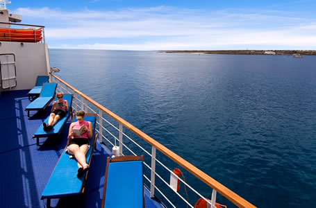Join our guides in the lounge for nightly briefings about the next day's activities. On the following day, visit the National Park on carefully planned excursions. In between outings, it will feel as if your connection with the islands never ends, as panoramic windows in our numerous social areas offer almost permanent visual contact with the island landscapes while you are inside the ship. Or step outside with your camera and make the most of the numerous outdoor social areas, including an outdoor terrace for dining when weather permits and an observation deck that is perfect for equatorial stargazing. Relax in the hot tub, work out in the cardio-gym, or lounge on the sun deck.