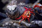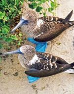 footed boobies and Galapagos penguins sharing the same rocky, sunning space